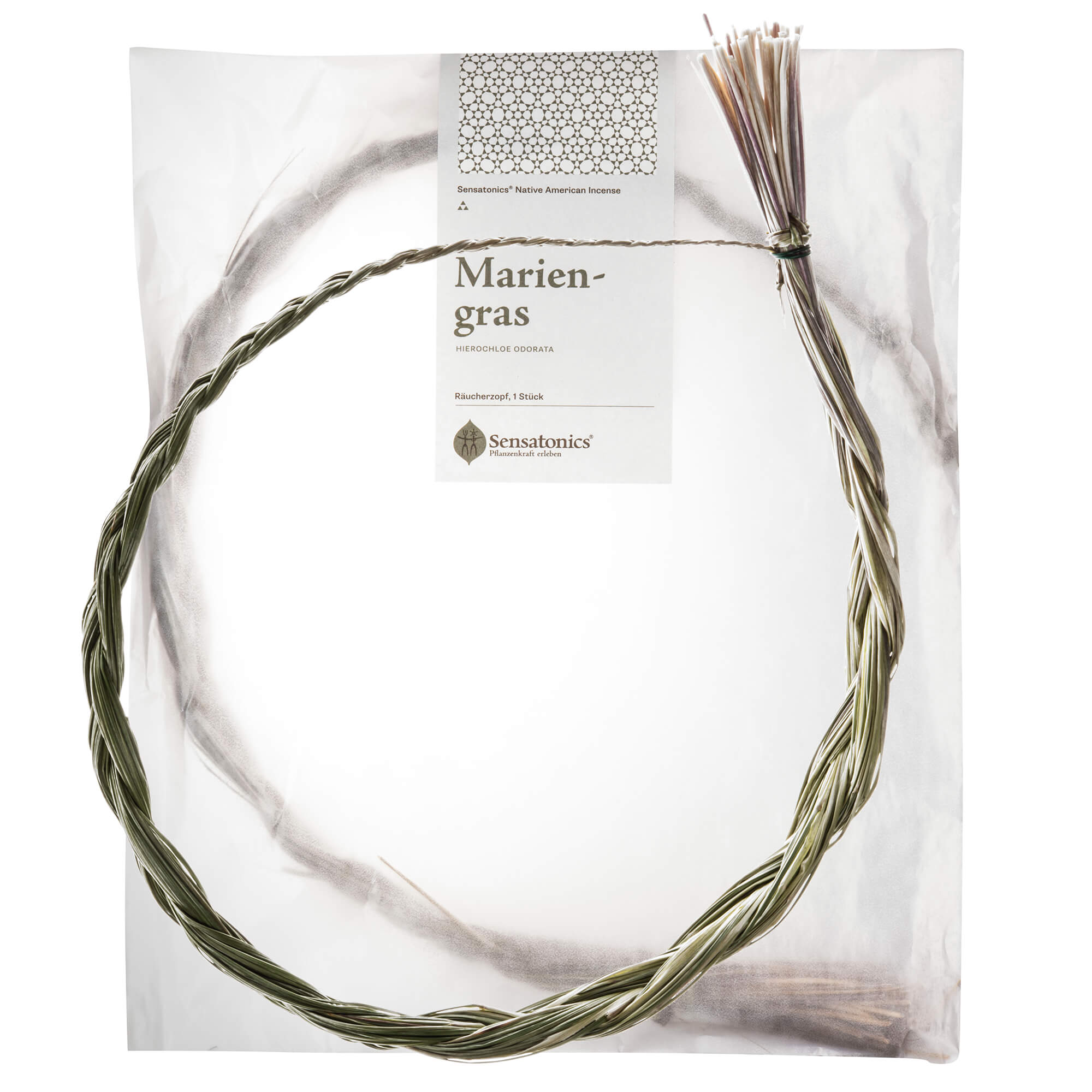 Hand picked with prayer and braided in a good way by native families in Canada. For burning, the braid is held by one side, then ignited and fanned with air at the other side.