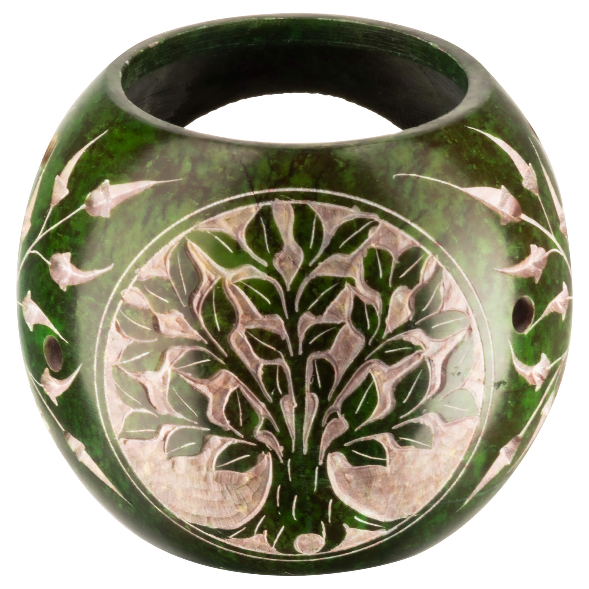 Diese zauberhafte, grüne Aromalampe mit handgraviertem Weltenbaum eignet sich zum Verdampfen ätherischer Öle. In das Schälchen mit Wasser, das durch ein Teelicht erhitzt wird, werden ca. 5-10 Tropfen eines - oder mehrerer - ätherischer Öle gegeben. Der aufsteigende Wasserdampf trägt die Düfte der Öle in die Raumluft. Umfassende Informationen zur Anwendung ätherischer Öle finden Sie in unserem Buch "Himmlische Düfte".