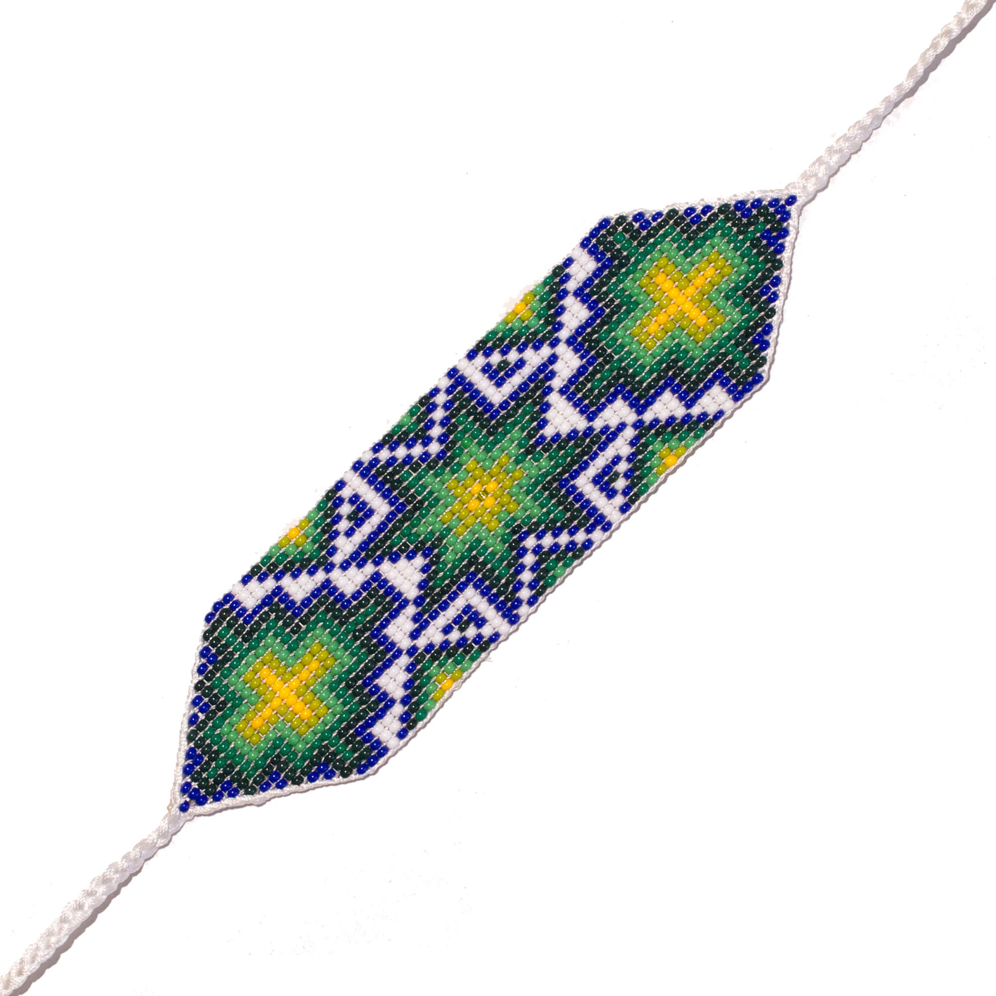 Camentsa Armband aus Glasperlen - inspiriert durch Yage (Ayahuasca) - Visionen. Neben der Bedeutung des Musters haben auch die Farben ihren spezifischen Sinngehalt: