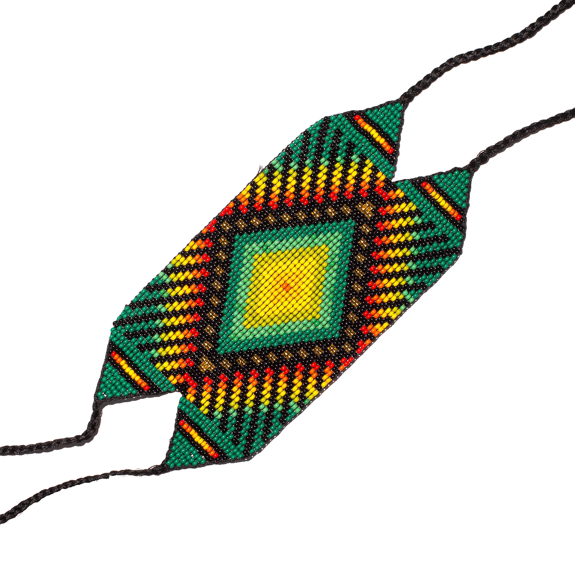 Camentsa Armband aus Glasperlen - inspiriert durch Yage (Ayahuasca) - Visionen. Neben der Bedeutung des Musters haben auch die Farben ihren spezifischen Sinngehalt: