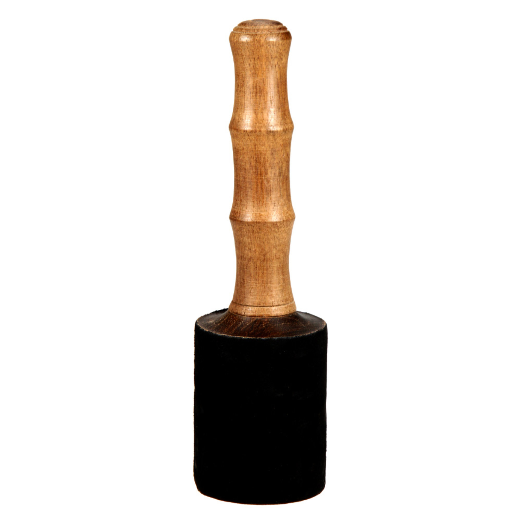 Dieser mit schwarzem oder rotem Leder umwickelte Schlägel passt am besten zu Klangschalen ab ca. 1500 g (Arhat Klangschale) – eine Auswahl passender Klangschalen finden Sie weiter unten.