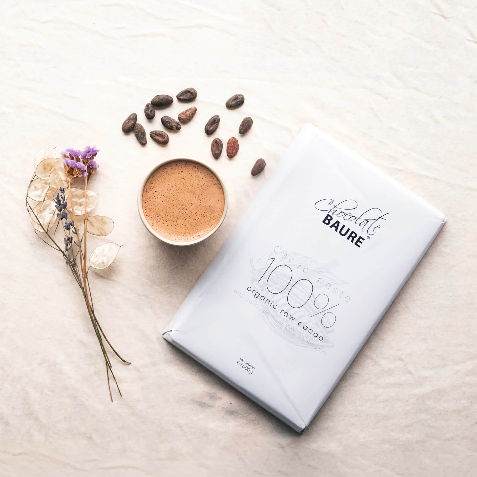 Diese sehr feine Rohkakaomasse von Bohnen aus Wildsammlung aus dem bolivianischen Regenwald ist ideal für Kakaozeremonien, Trinkschokoladen oder zum rohen Verzehr geeignet. Mit ihrem milden Aroma eignet sie sich gut für einen sanften Abendkakao. Die aus der ursprünglichen Kakaosorte „Cacao Beniano“ hergestellte Masse schmeckt erdig-schokoladig mit einer leicht blumigen Note und kann sowohl roh verzehrt als auch für zeremonielle Kakaos, Backwaren oder herzhafte Saucen verwendet werden. Der Block mit 100 % Kakaoanteil wird fair und direkt gehandelt.